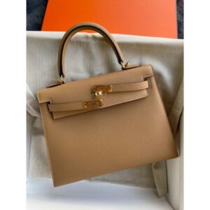 Hermes Kelly Sellier 25 Handmade Bag In Chai Epsom Calfskin