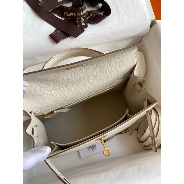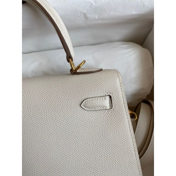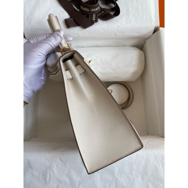 Hermes Kelly Sellier 25 Handmade Bag In Craie Epsom Calfskin