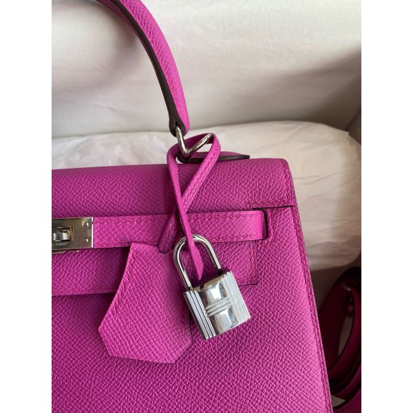 The Hermès Kelly 25cm is an exquisite handbag of timeless style and distinction. Born as the Sac à Dépêches in the early 20th century, the company renamed the bag in 1977 after legendary actress and Princess of Monaco, Grace Kelly. The Kelly Sellier is also a more structured, rigid bag thanks to the Epsom calfskin, this printed leather takes its name from a town in south-east England that is famous for its horse races. Always prized for its sophisticated style, the Hermès Kelly 25 neatly secures your daily.