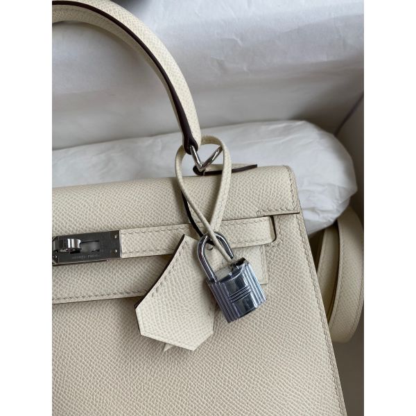 Hermes Kelly Sellier 25 Handmade Bag In Nata Epsom Calfskin
