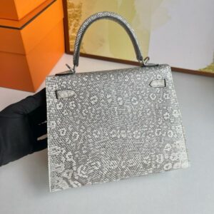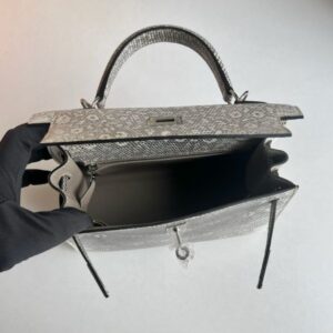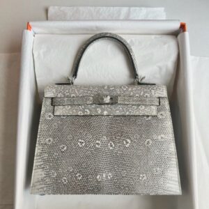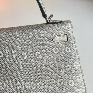 Grace Kelly who used this bag to conceal her pregnancy from the nosy paparazzi, since then the Kelly bag was officially named after her. A very uncommon model – the size 25 cm is just a little smaller than the K28 and is the perfect alternative for rather smaller women. This Lizard skin is extremely valuable and rare and is processed as little as possible to maintain its natural texture.