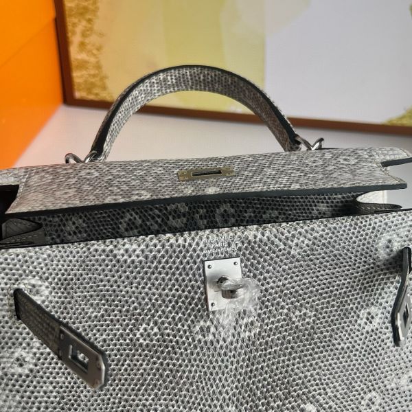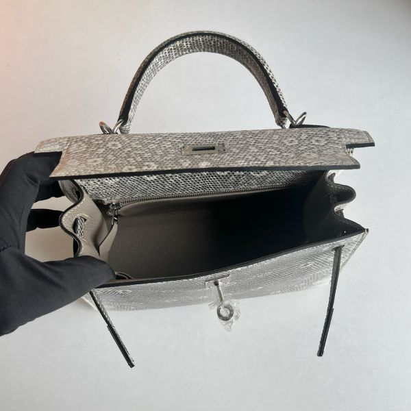 Hermes Kelly Sellier 25 Handmade Bag in Natural Lizard Skin