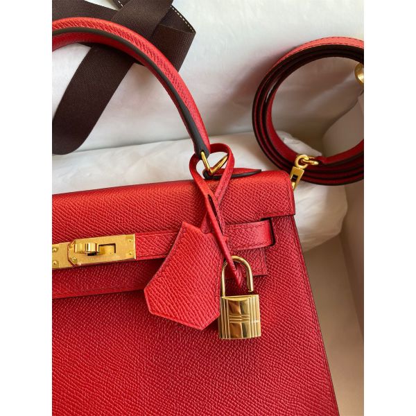 Hermes Kelly Sellier 25 Handmade Bag In Red Epsom Calfskin
