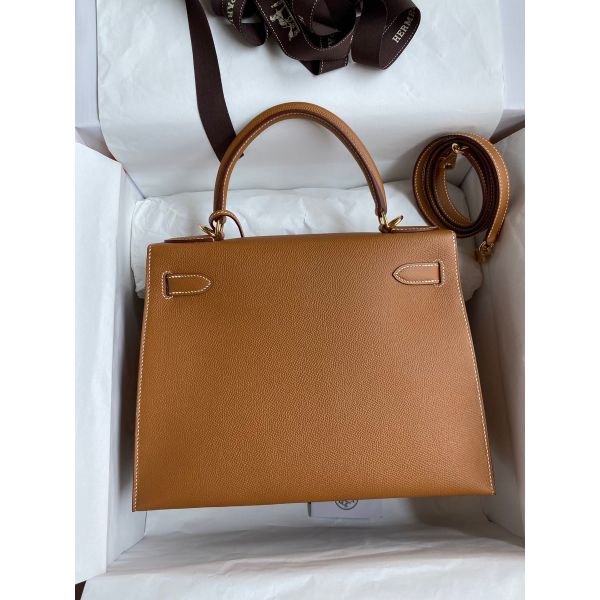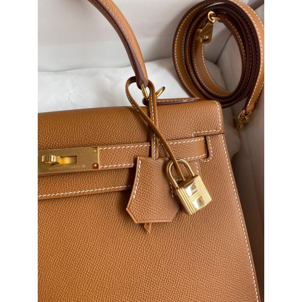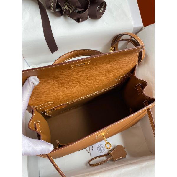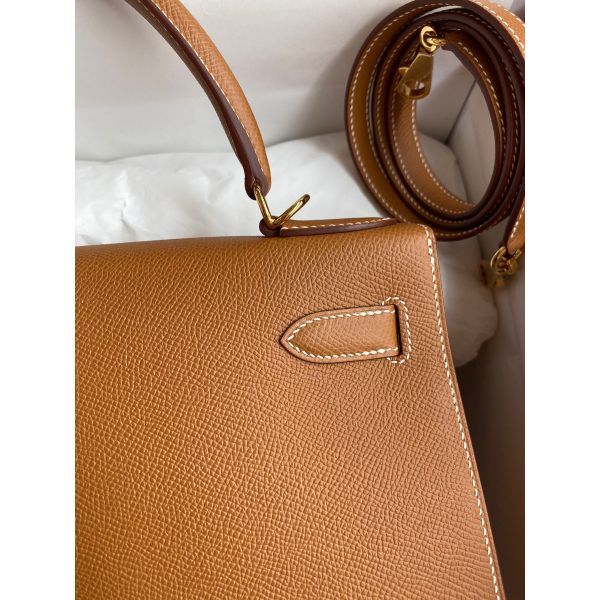 Hermes Kelly Sellier 28 Handmade Bag In Gold Epsom Calfskin