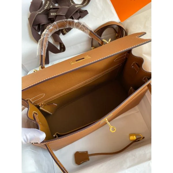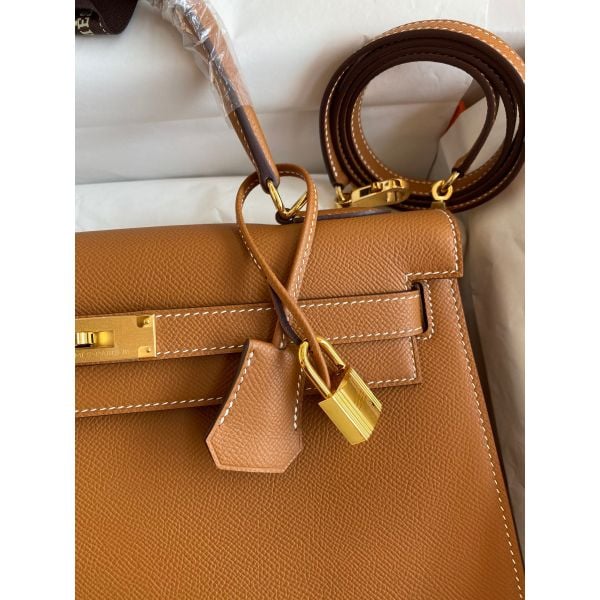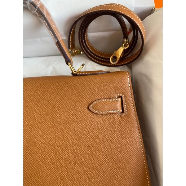Hermes Kelly Sellier 32 Handmade Bag In Gold Epsom Calfskin