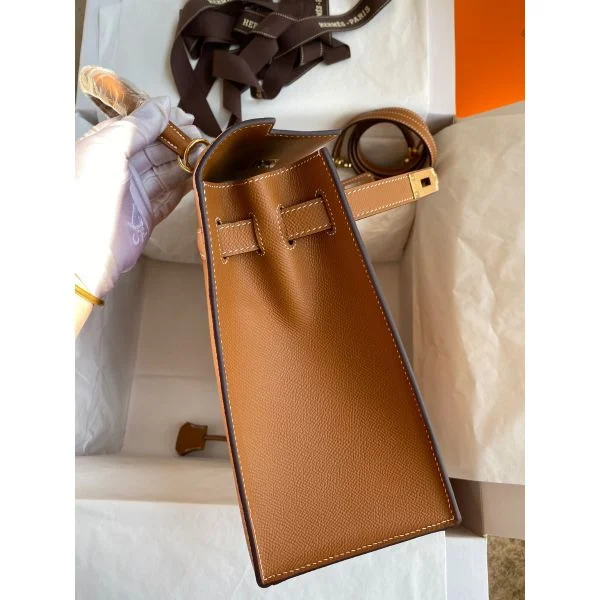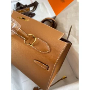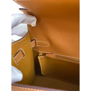 The iconic trapezoid shape of the Hermes Kelly 32 was a striking departure from the ornate handbag styles of the day. The chic look took the world by storm when legendary actress, and crowned princess of Monaco, Grace Kelly was photographed holding her Hermès Sac à Dépêches bag to shield her baby bump from the paparazzi. This Kelly 32 bag in Sellier, a rigid style made by stitching the sides of the bag on the outside, thanks to the Epsom calfskin. It is an ideal daily bag for the busy woman on the go. It is spacious enough to carry all your everyday essentials.