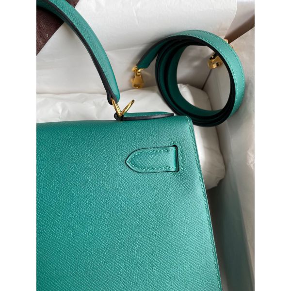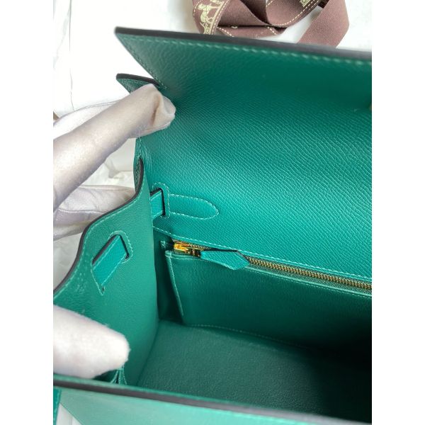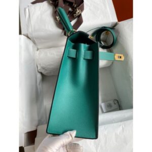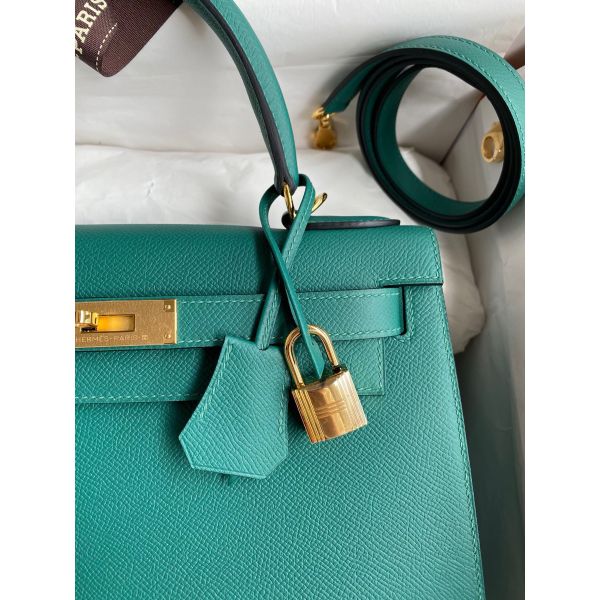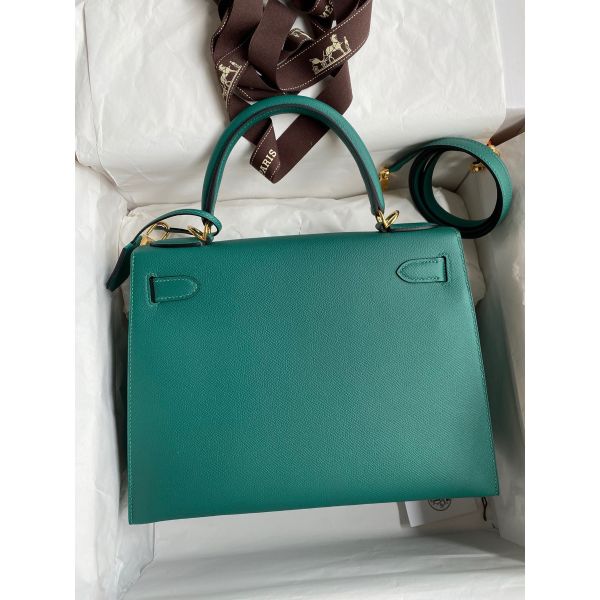 Hermes Kelly Sellier 32 Handmade Bag in Malachite Epsom Calfskin
