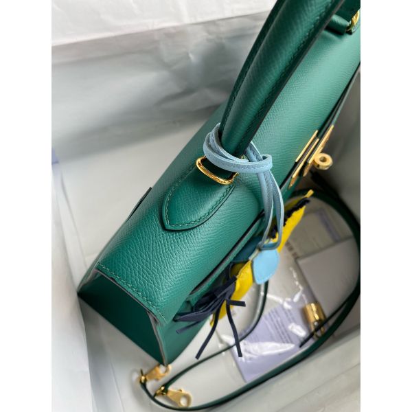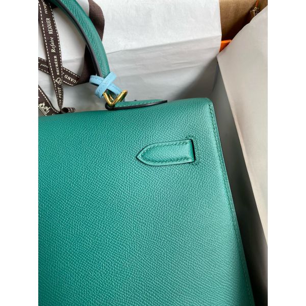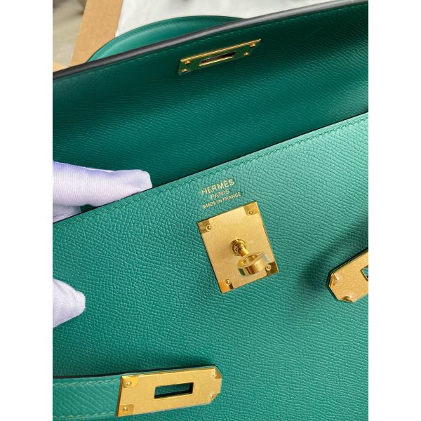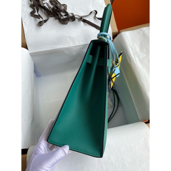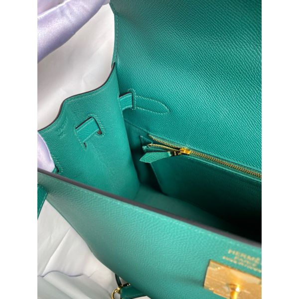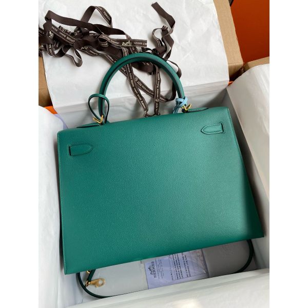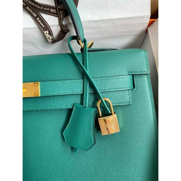 Hermes Kelly Sellier 35 Handmade Bag In Malachite Epsom Calfskin