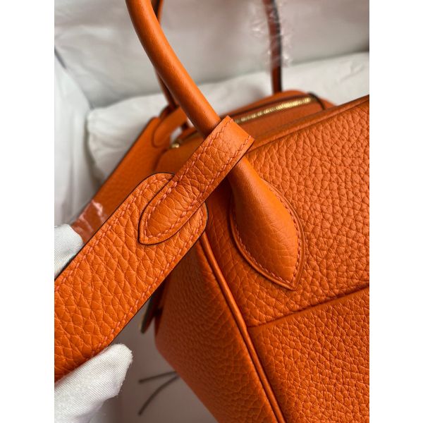 Hermes Lindy 26 Handmade Bag In Orange Clemence Leather