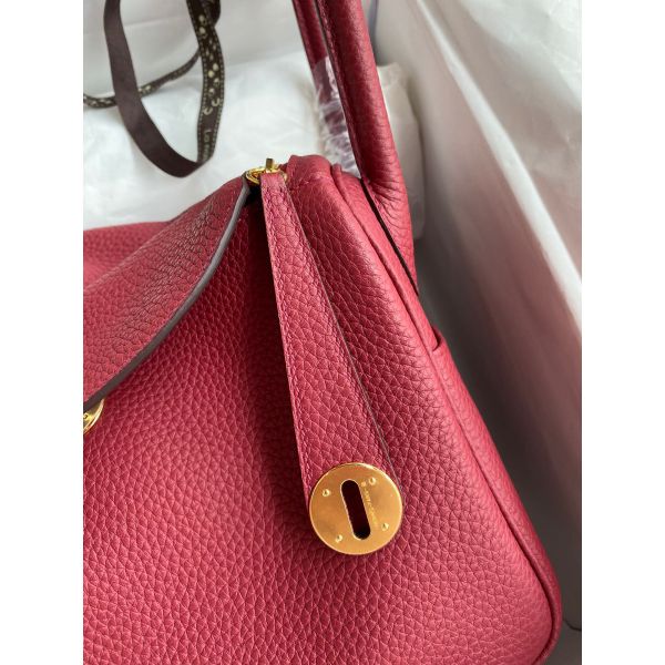 Hermes Lindy 26 Handmade Bag In Ruby Clemence Leather