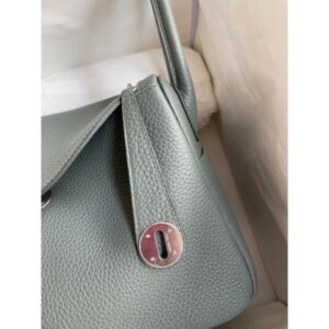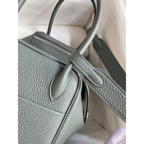 Hermes Lindy 26 Handmade Bag In Vert Amande Clemence Leather