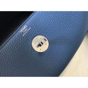 Hermes Lindy 26cm Bag In Blue Agate Clemence Leather PHW