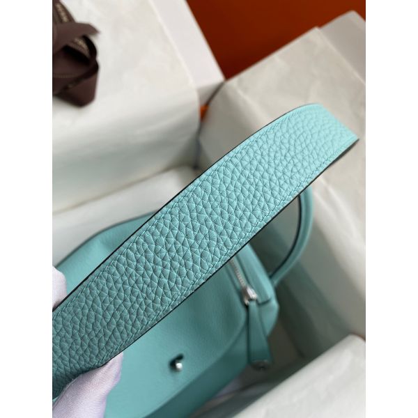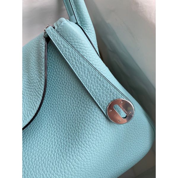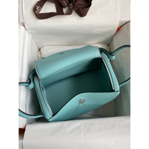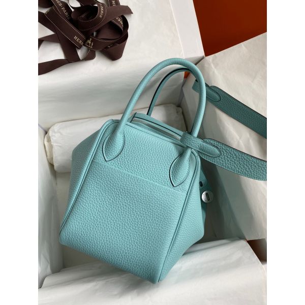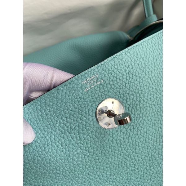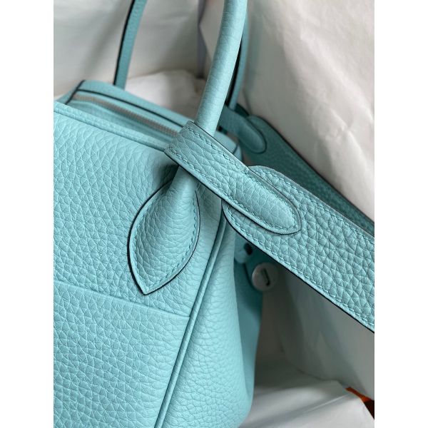 Hermes Lindy 30 Handmade Bag In Blue Atoll Clemence Leather