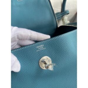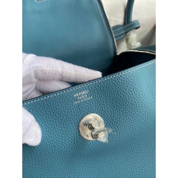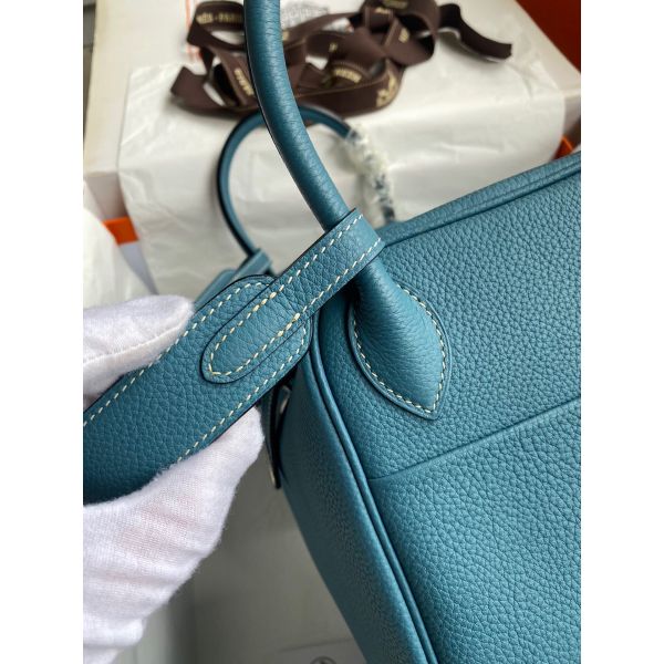 Hermes Lindy 30 Handmade Bag In Blue Jean Clemence Leather