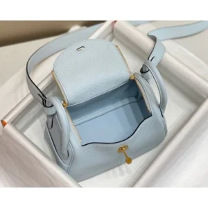 Hermes Lindy Mini Bag In Blue Brume Clemence Leather GHW