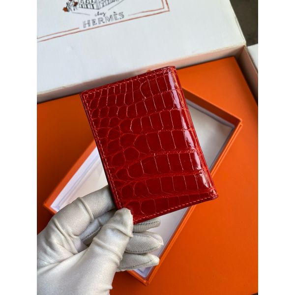 Hermes MC² Euclide Card Holder in Red Shiny Alligator Leather