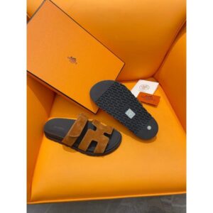 Hermes Men’s Chypre Sandals in Brown Suede Calfskin