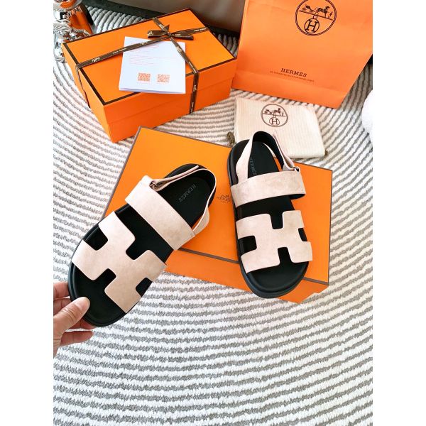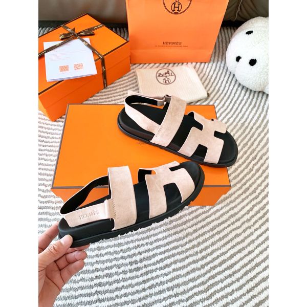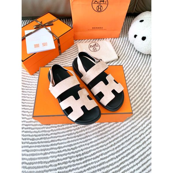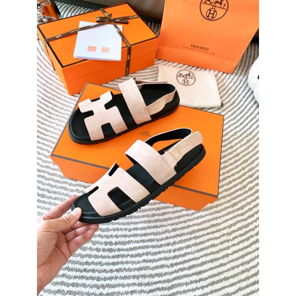 Hermes Men’s Genius Sandals In Beige Suede Calfskin