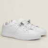 The Hermes Get Sneaker, a comfortable everyday classic sneaker. This pair of Men’s Get Sneakers comes in H canvas. It features a new “Hermès Paris” print on the outside of the shoe for the perfect modern, summer look. This is a perfect sneaker for everyday wear and is super comfy.