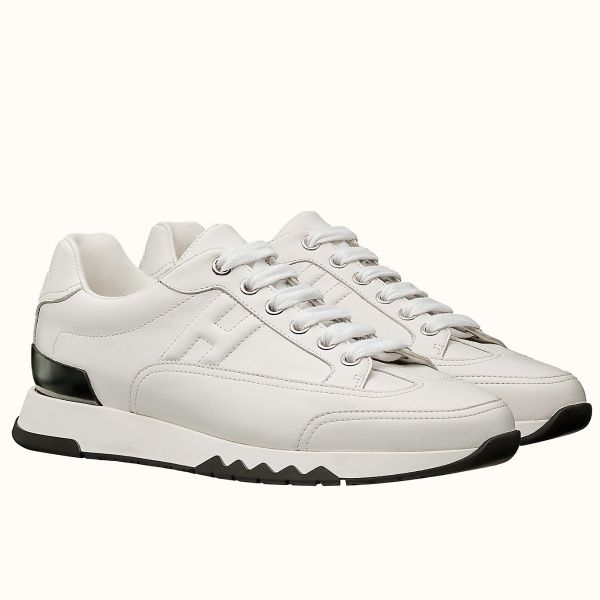 Hermes Men’s Trail Sneakers In White Calfskin Leather