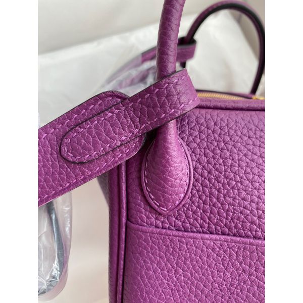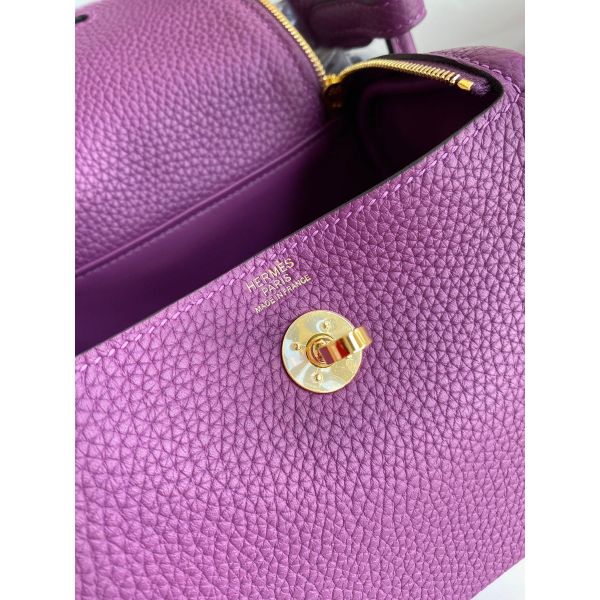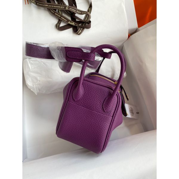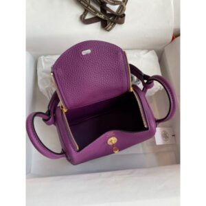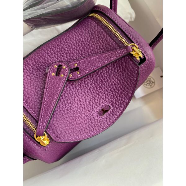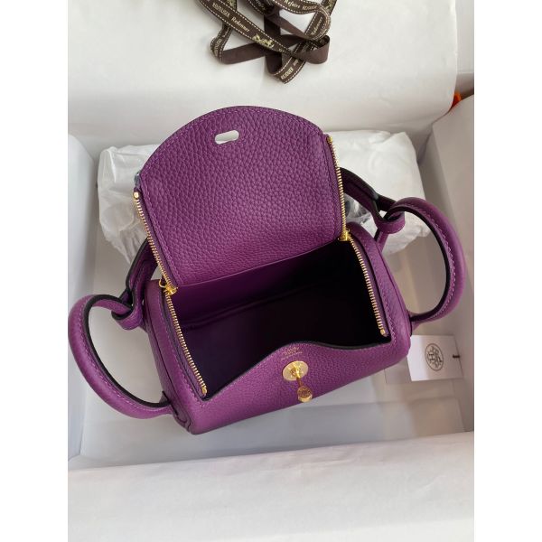 Hermes Mini Lindy Handmade Bag In Anemone Clemence Leather