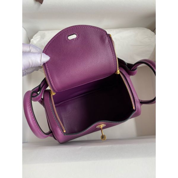 Hermes Mini Lindy Handmade Bag In Anemone Swift Leather