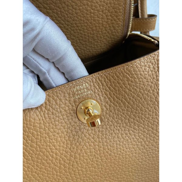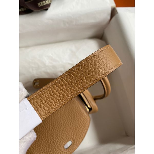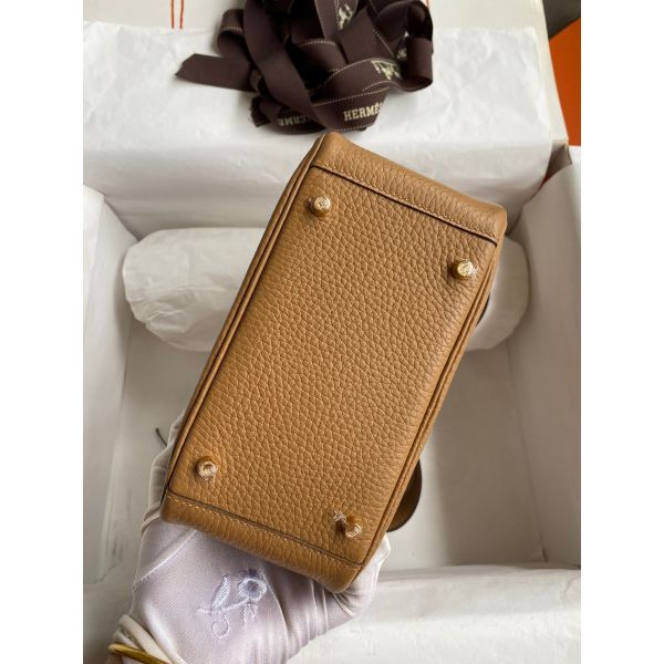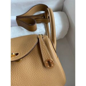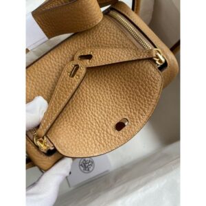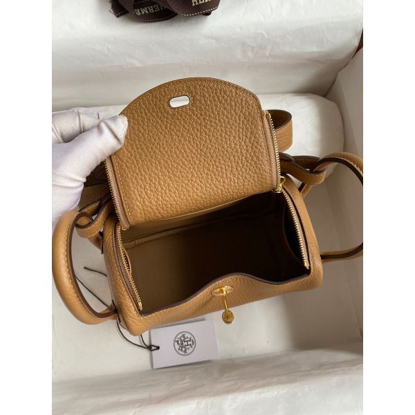 Hermes Mini Lindy Handmade Bag In Biscuit Clemence Leather