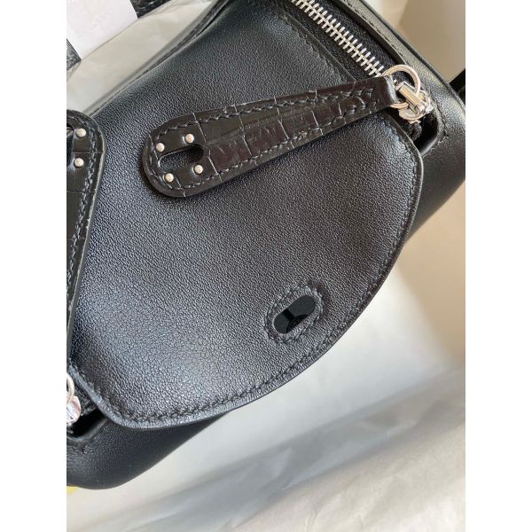 Hermes Mini Lindy Handmade Bag In Black Swift Leather