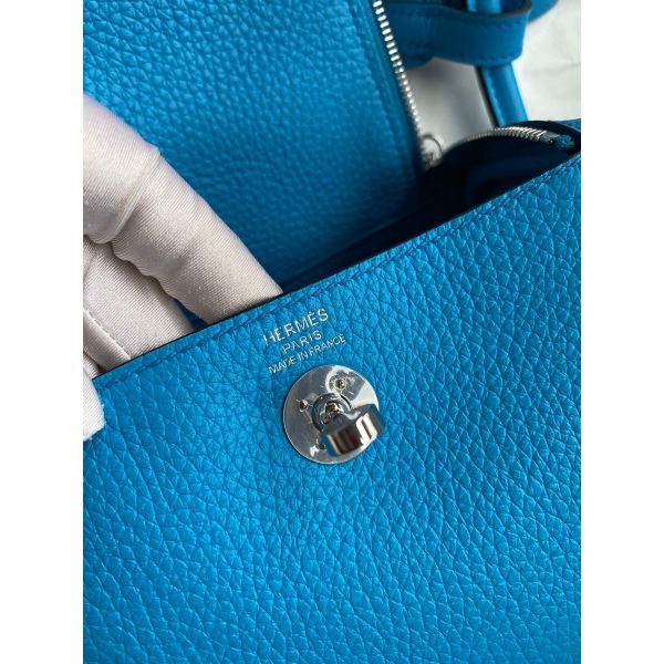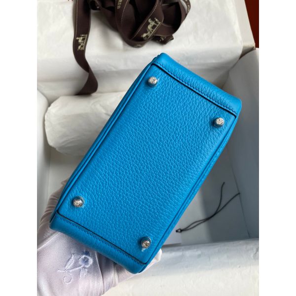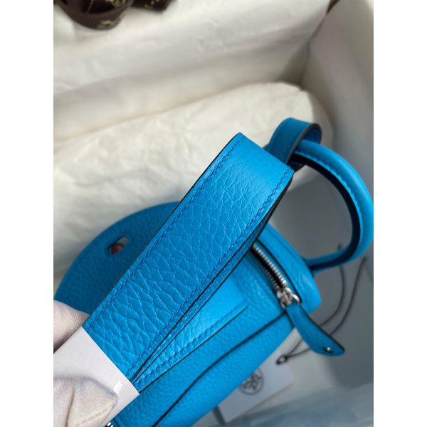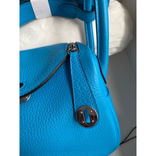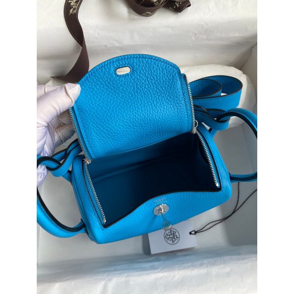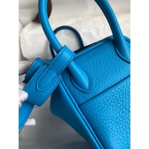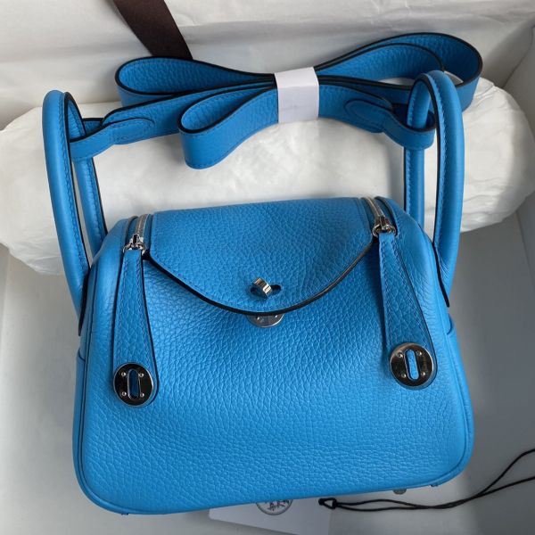 Hermes Mini Lindy Handmade Bag In Blue Frida Clemence Leather