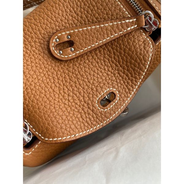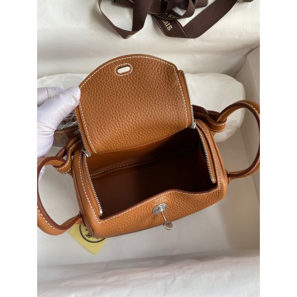 Hermes Mini Lindy Handmade Bag In Gold Clemence Leather