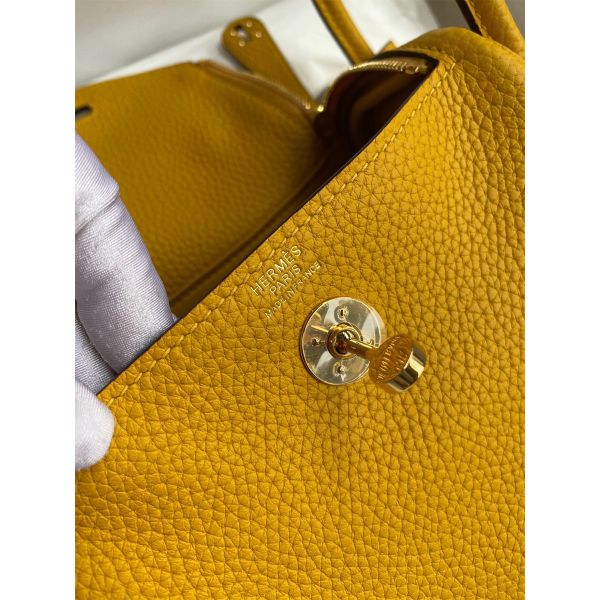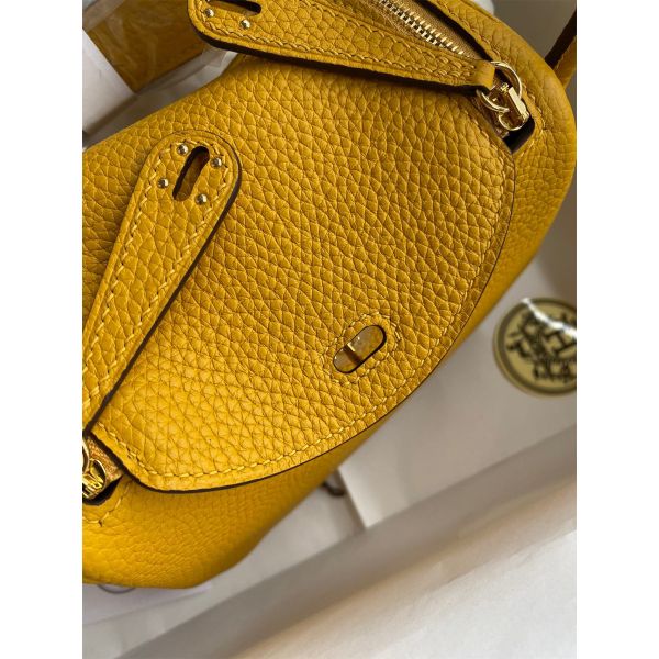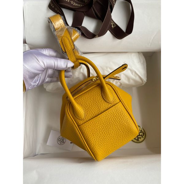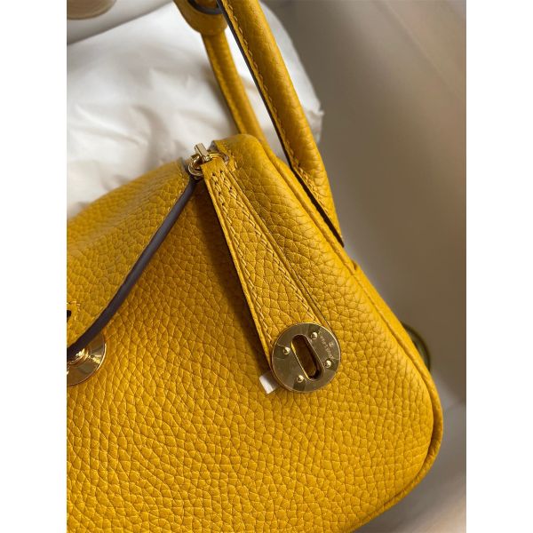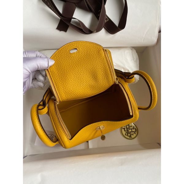 Hermes Mini Lindy Handmade Bag In Jaune Ambre Clemence Leather