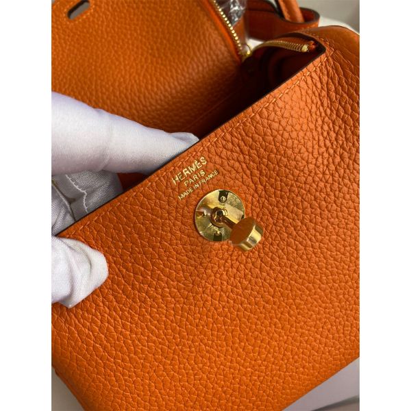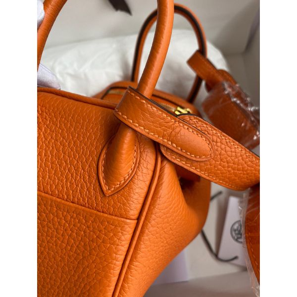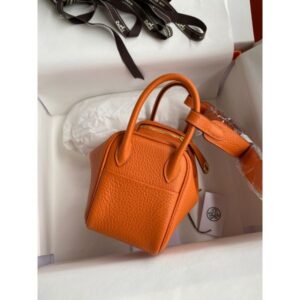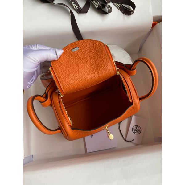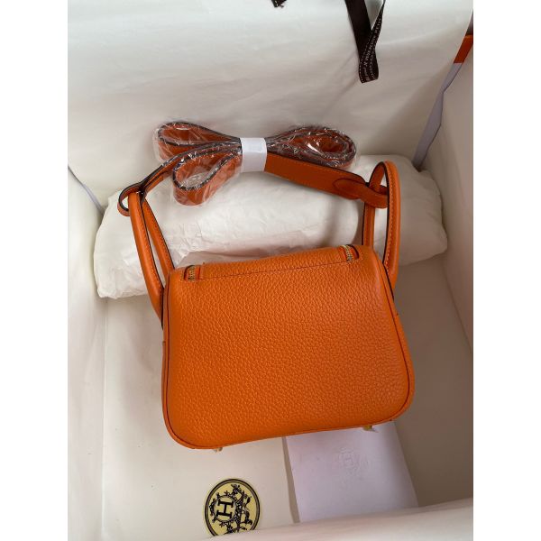 Hermes Mini Lindy Handmade Bag In Orange Clemence Leather