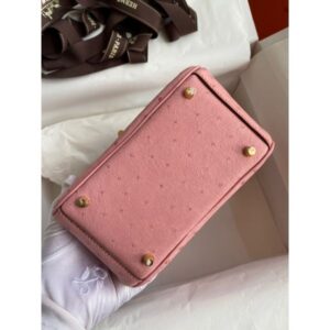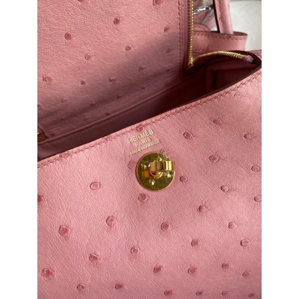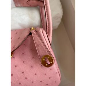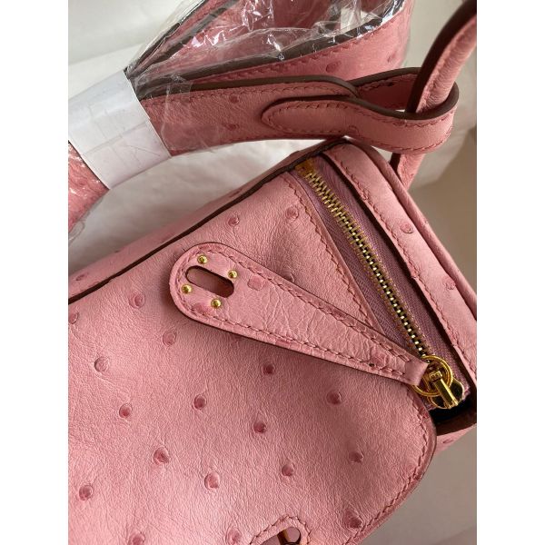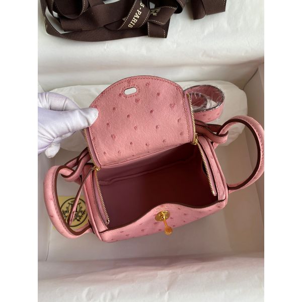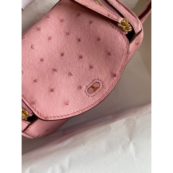 Hermes Mini Lindy Handmade Bag In Rose Sakura Ostrich Leather