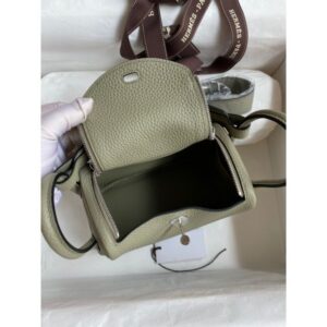 Hermes Mini Lindy Handmade Bag In Sauge Clemence Leather