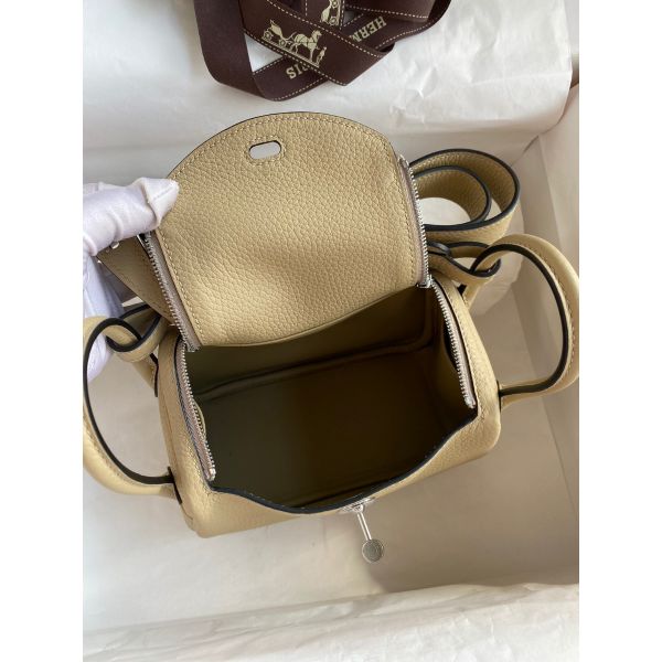 Hermes Mini Lindy Handmade Bag In Trench Clemence Leather