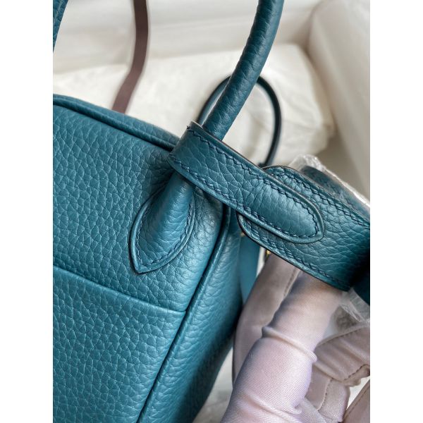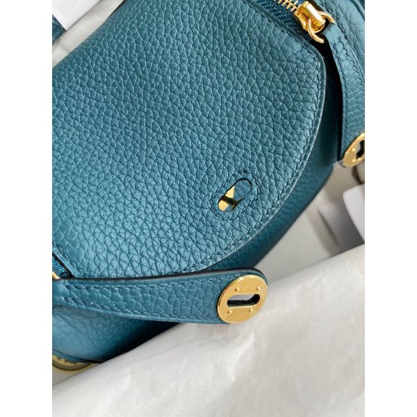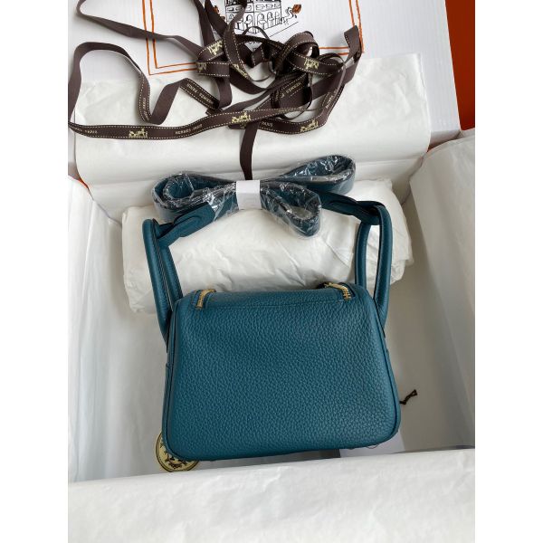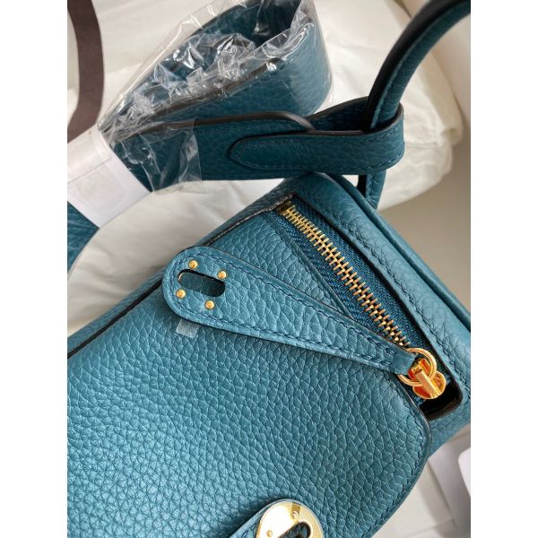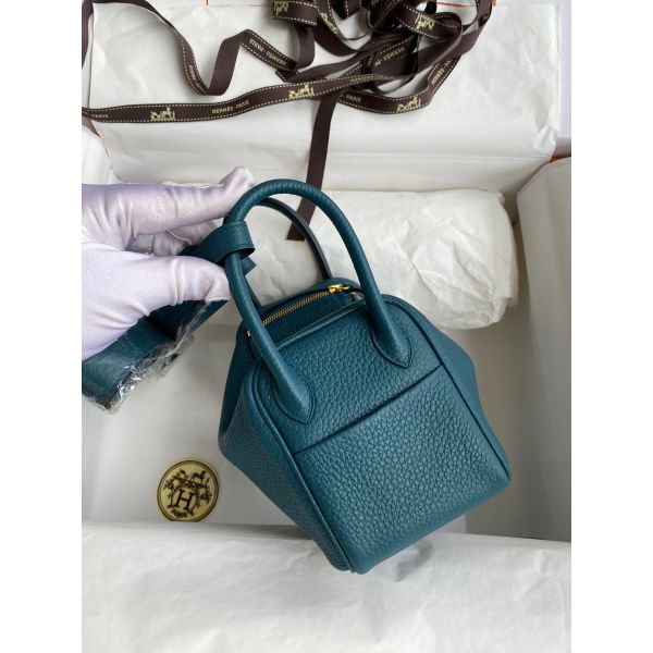 Hermes Mini Lindy Handmade Bag In Vert Bosphore Clemence Leather