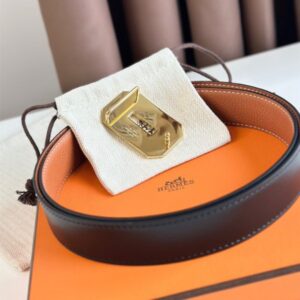 Hermes H Touareg Reversible Belt 32MM in Gold Clemence Leather