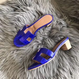 Hermes Oasis Sandals in Blue Swift Leather with Botanique Printed