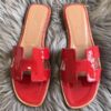 Hermes Oran Perforated Sandals In Malachite Epsom Leather