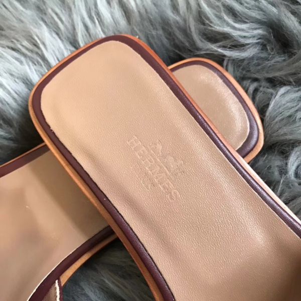 Hermes Oran Sandals In Bordeaux Swift Leather