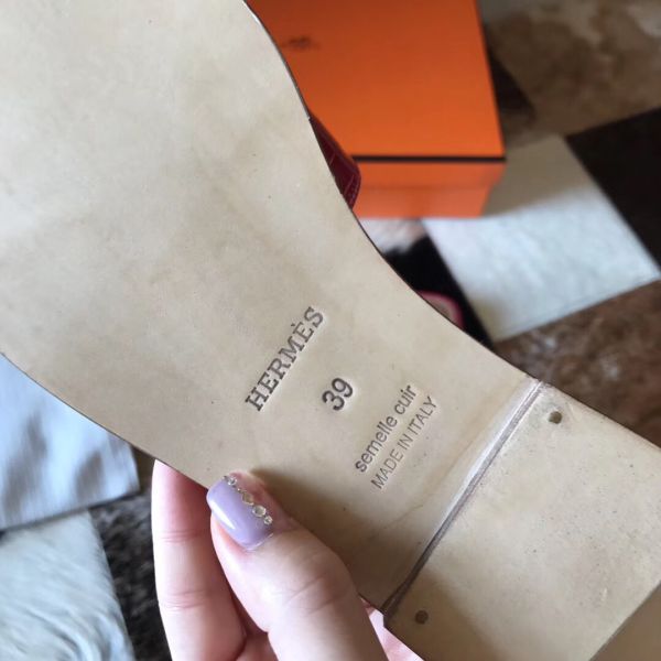 Hermes Oran Sandals In Rose Scheherazade Shiny Niloticus Crocodile
