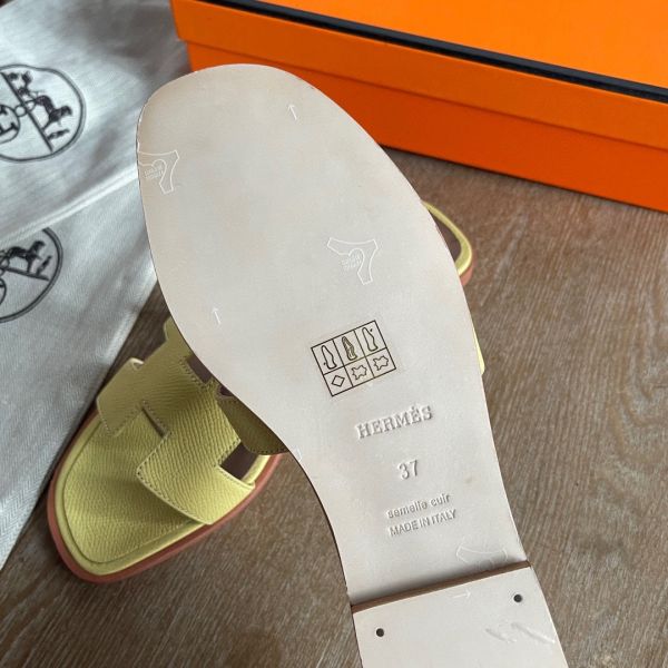Hermes Oran Slide Sandals in Jaune Poussin Epsom Calfskin