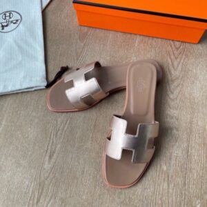 The most outstanding feature of the Oran sandal is the iconic H cutout that stands as a symbol of the Hermes brand that is known throughout the world and in fashion circles. The uppers of the Oran sandal are made of Metallic leather and finished with natural leather sole, this is an essential accessory for any woman’s wardrobe featuring the iconic Hermes style for casual wear.