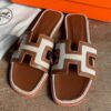 Hermes Oran Slide Sandals in White Swift Calfskin with Printed Lining
