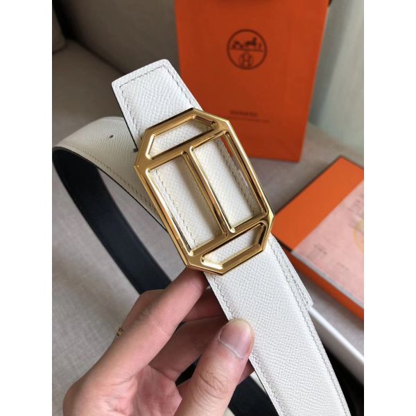 Hermes H Touareg Reversible Belt 32MM in White Epsom Leather