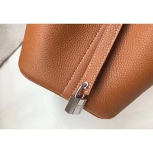 The Hermes Picotin Lock bag, inspired by horse troughs, this timeless and minimalist piece gives material star billing. Looks more like a small buckle bag. This is a tote version, take the handles, load it with your personal items and you are good to go. This bag has zero problem swallowing all your essentials without expanding.