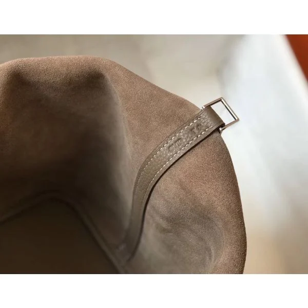The Hermes Picotin Lock bag, inspired by horse troughs, this timeless and minimalist piece gives material star billing. Looks more like a small buckle bag. This is a tote version, take the handles, load it with your personal items and you are good to go. This bag has zero problem swallowing all your essentials without expanding.