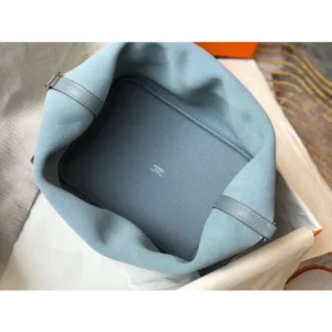 Hermes Picotin Lock 22 Bag In Blue Lin Clemence Leather