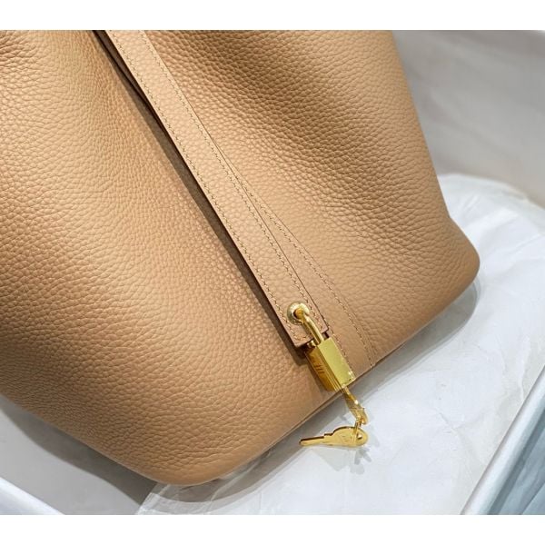 Look into some more details of this streamlined design. In all its uniqueness, it has a cross-over leather strap to add a bonus security to your bucket tote, with your iconic Hermes Palladium lock and key. This unique and lovely bag is perfect for everyday use as it has tons of interior space for all your necessities.
