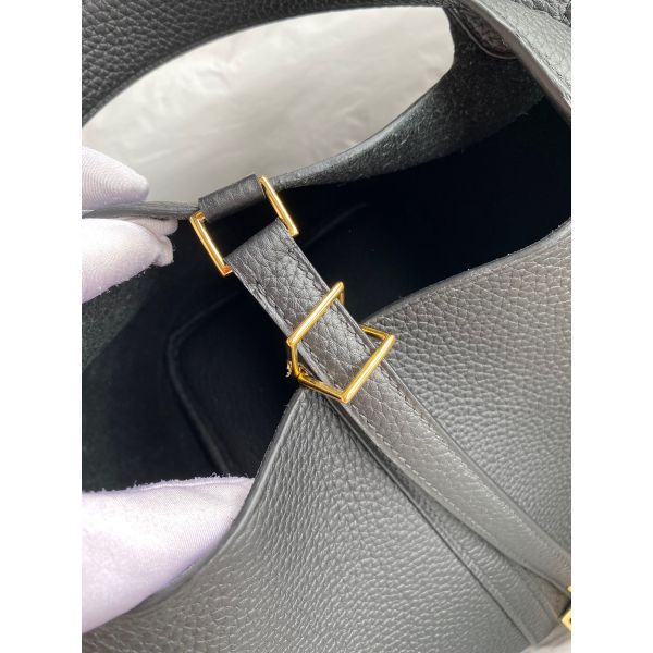 The Hermès Picotin 22 or MM (Moyen Model) is a luxurious take on the traditional bucket bag. Picotin bags harken back to Hermès’ roots as harness and tack leatherworks for French nobility. Inspired by horse feed bags and named for the portion of grain the bags hold, this humble inspiration led to one of the most casual of Hermès luxury handbags with a slouchy style and contemporary appeal. Since 2002, the simple leather strap closure has sported the iconic Hermès lock, giving these bags the name “Picotin lock”. As a chic carryall with a minimalist design, the Picotin 22 belongs in your wardrobe!